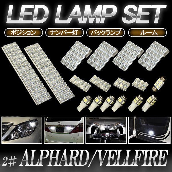 20系 前期/後期 アルファード/ヴェルファイア専用 LED ルームランプセット/ポジション球/ナンバー灯/バックランプ フルセット