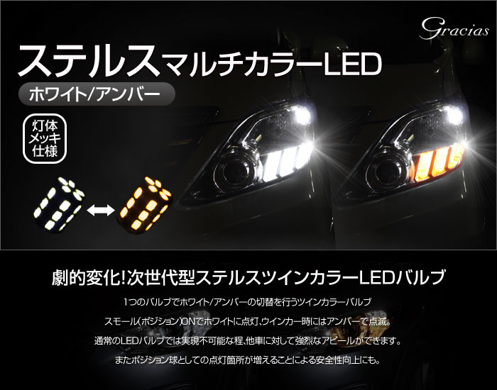 ステルスマルチカラーウインカーLEDバルブ ホワイト/アンバー