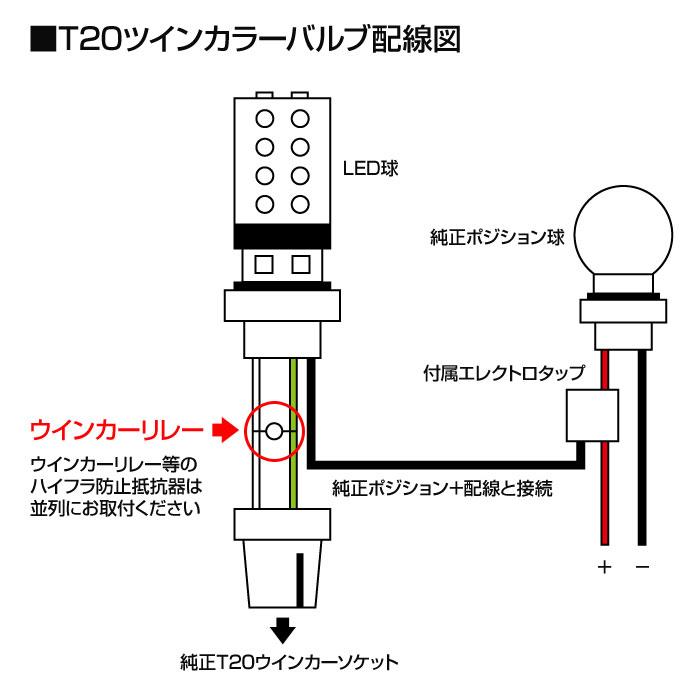 | T20 | シングル | ピンチ部違い対応 マルチカラー LEDバルブ | ホワイト / アンバー | 7,480円 |