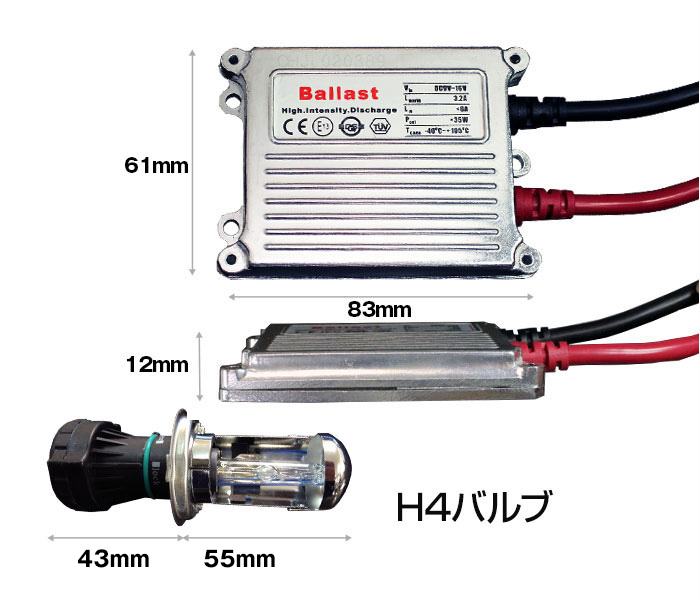 H4 Hi/Lo 35W HIDコンバージョンキット12000K24,200円