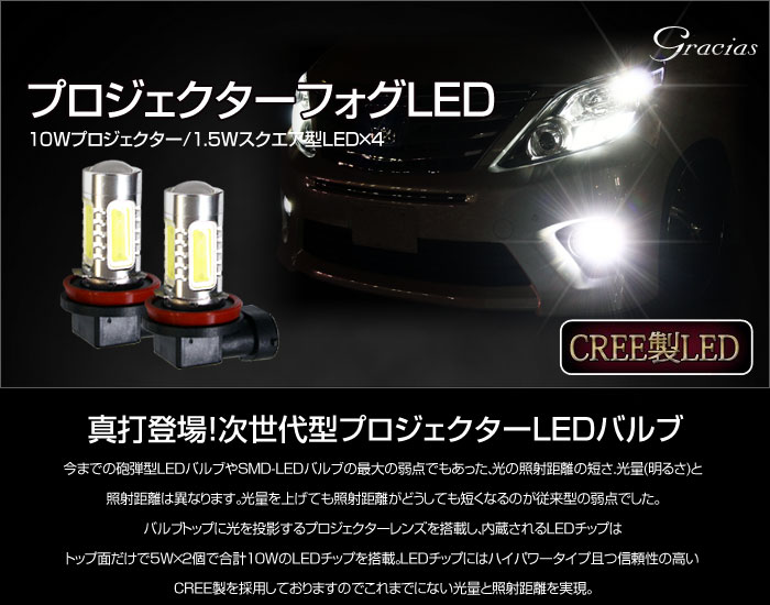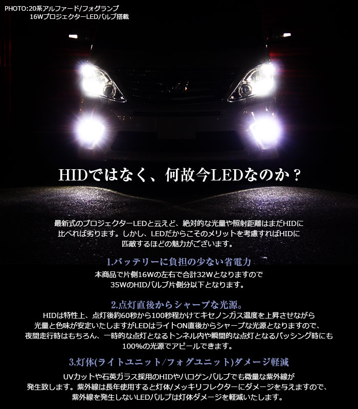 LEDフォグバルブ プロジェクタータイプ 16W ホワイト